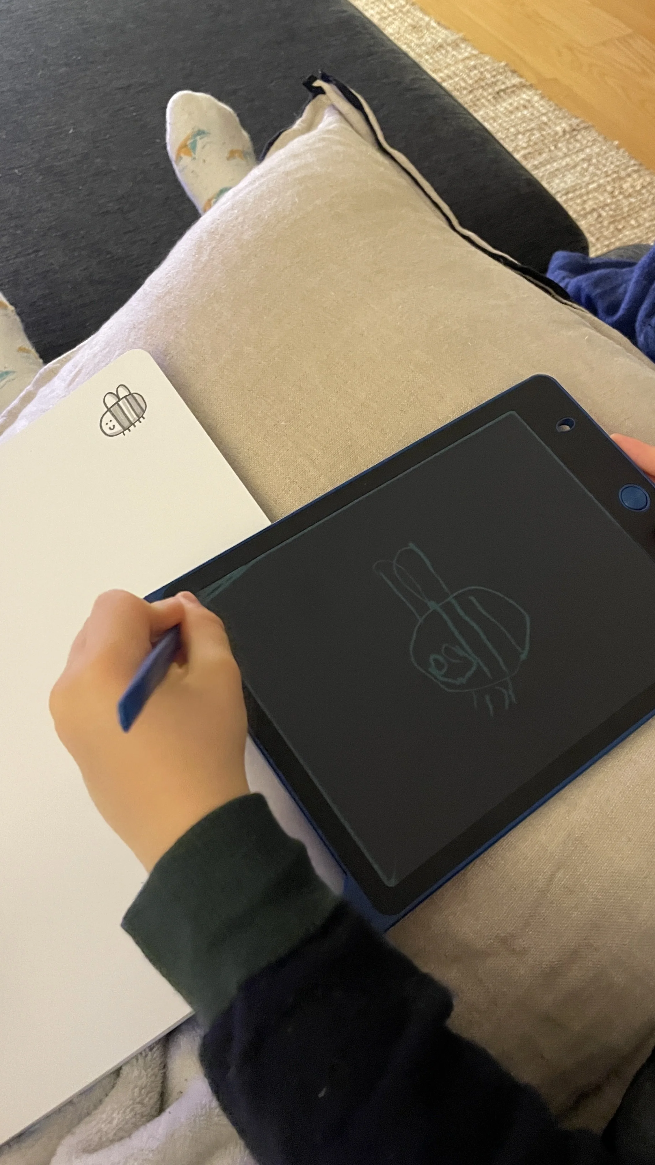 Para dar início a esta nova fase, peguei no “ipad de desenho”, fiz um desenho e pedi-lhe para adivinhar. Como gostou do jogo, começou ele a “jogar”. “Mamã adivinha o que é?”