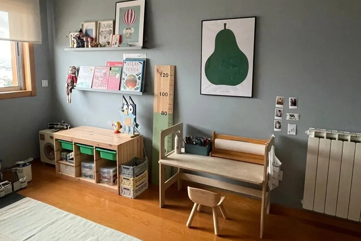 O Baby A, não tem interesse pelo desenho, apesar de ter um espaço dedicado ao desenho no quarto, com canetas e papel sempre ao dispor. Percebi que o papel de rolo não é o que mais o entusiasma, por isso substituí por folhas A4 soltas e um caderno A5 com folhas lisas. Sugeriram-me também colocar cola, fitacola e tesoura para ele começar a mexer sem medos. Os lápis intimidam!