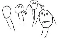 Depois desenhou uma cabeça com olhos, nariz e boca e umas pernas e o cérebro (riscos dentro da cabeça). Representando: A Figura Humana: O "Girino".